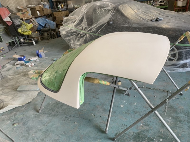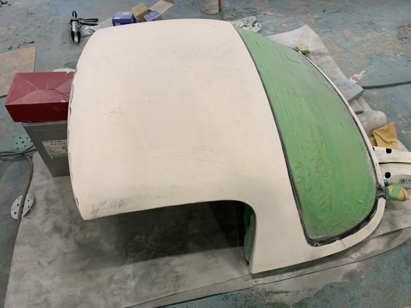 ユーノス ロードスター ルーフ 歪み確認のサフェーサー処理(右前から)