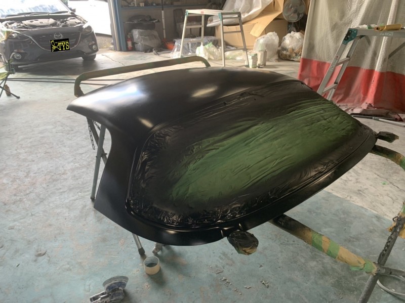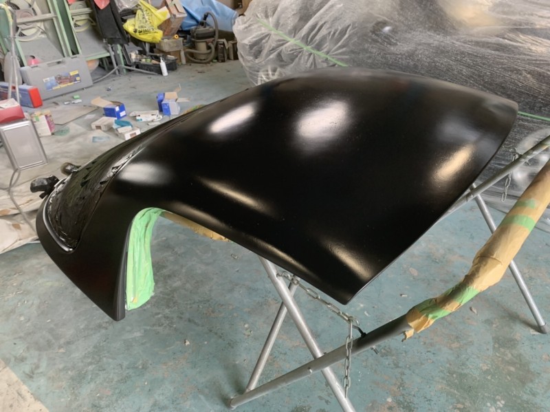 ユーノス ロードスターのルーフ(デタッチャブルハードトップ)の塗装が浮いてきたということで入庫されました。