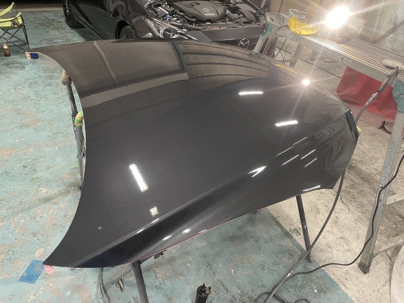 マツダ アクセラ ボンネット 塗装後の磨き完了(右側から)