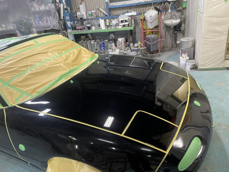 ユーノス ロードスター ボディー磨き ボンネットのみ完了 アップで
