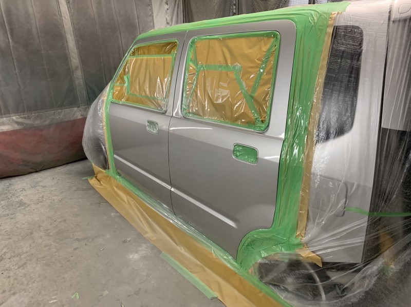 スズキ ワゴンR MH22S 左フロントドア&左リヤドア 塗装完了(リヤ側から)
