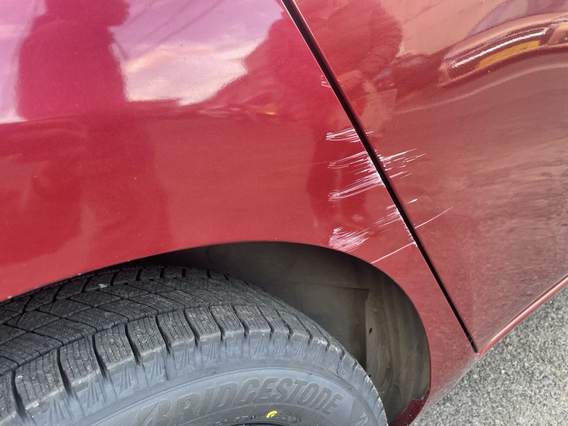 ニッサン リーフ 右リヤドア、右クォーターパネル 損傷部アップ