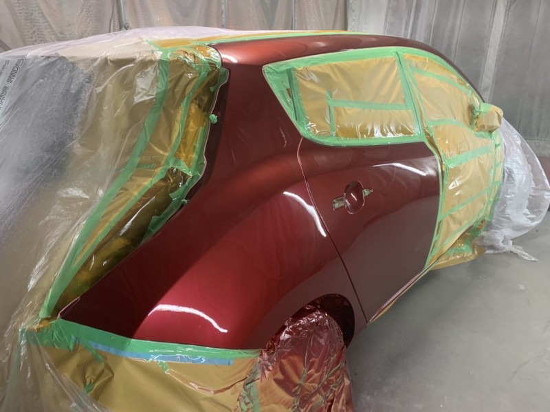ニッサン リーフ 右リヤドア、右クォーターパネル 塗装完了(フロントから)