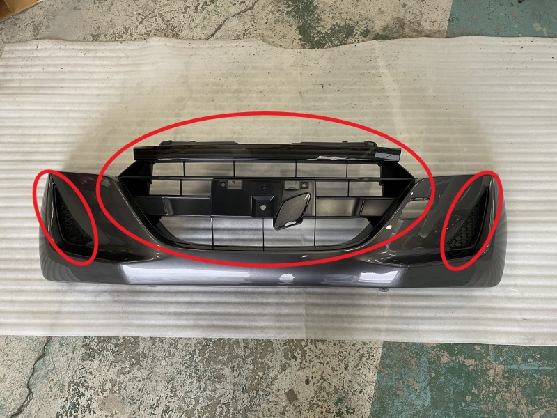 フロントバンパーのラジエターグリル・ガーニッシュ外し、塗装準備完了後塗装しました。