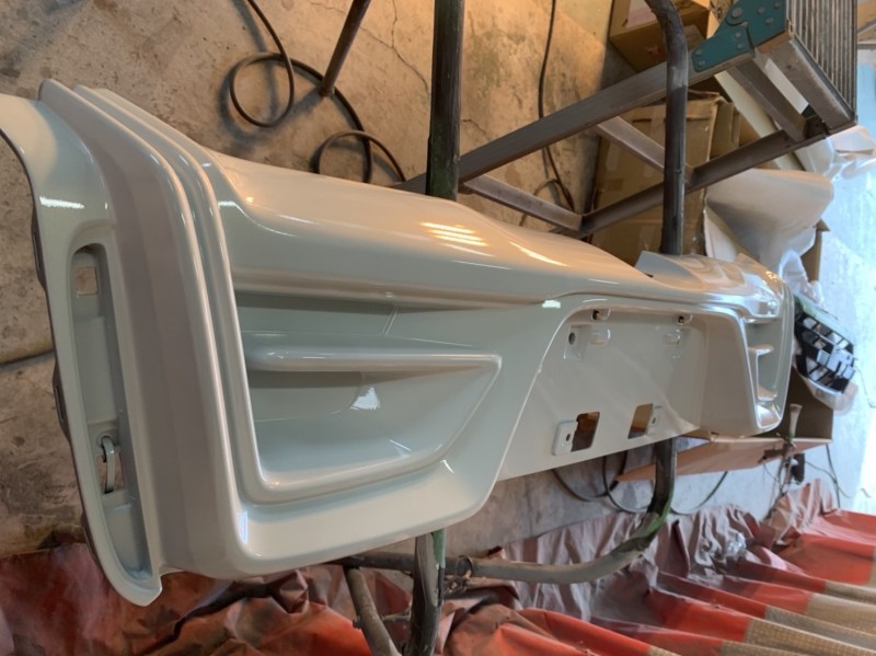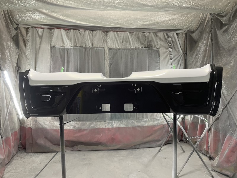 リヤディフューザーはブラックとホワイトパールの塗分なので1回全部ホワイトパール&クリヤーを施工しました。