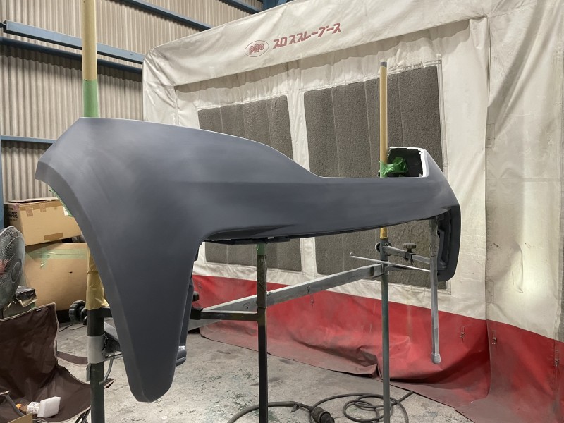 ホンダ S660 リヤバンパー 塗装準備完了(左側から)