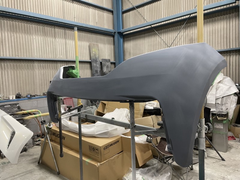 ホンダ S660 リヤバンパー 塗装準備完了(右側から)