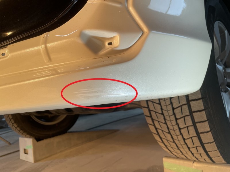今回はオーナー様の要望により、スポイラーを脱着せずに修理します。(^_^)