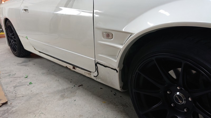シルビア サイドスカートFRP補修①