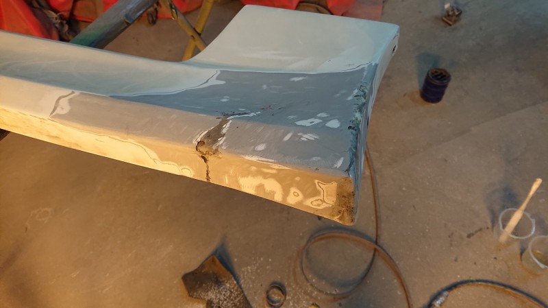 裏からもFRPの補修をします。