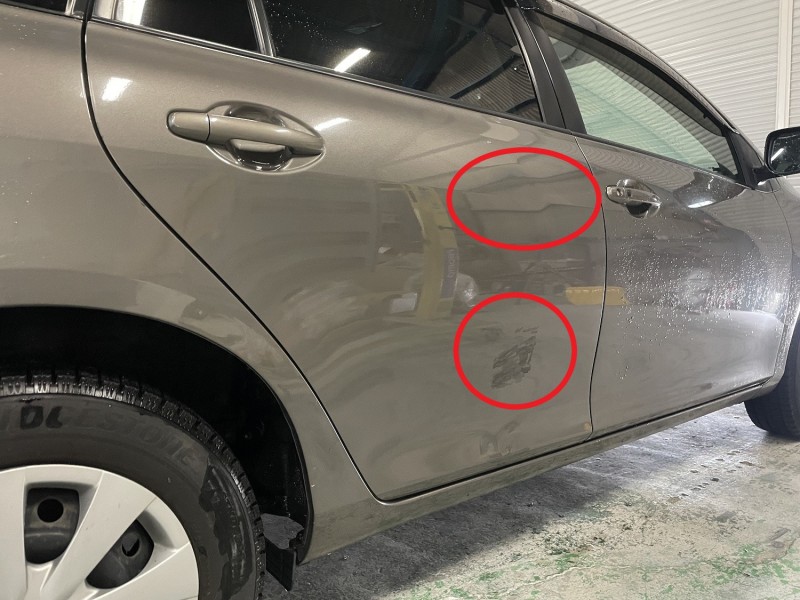 トヨタ フィールダーの右リヤドアの取替を施工したので投稿致します。