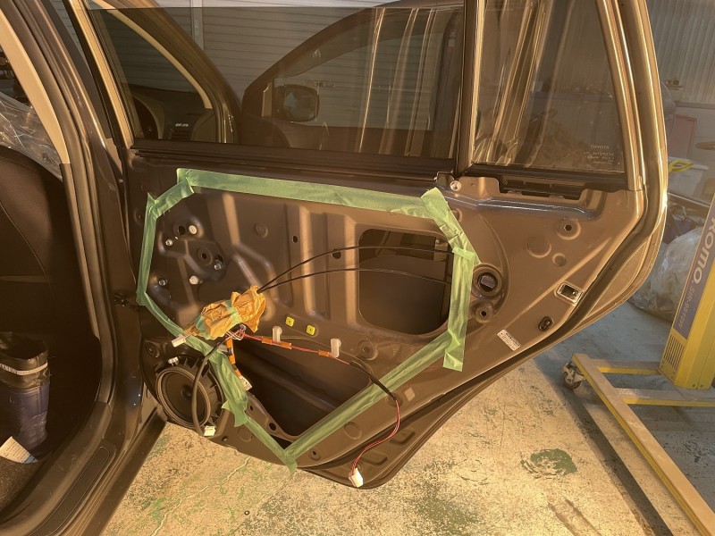 トヨタ フィールダー 右リヤドア 中古ドア(同色) 取替中 内張&部品外し