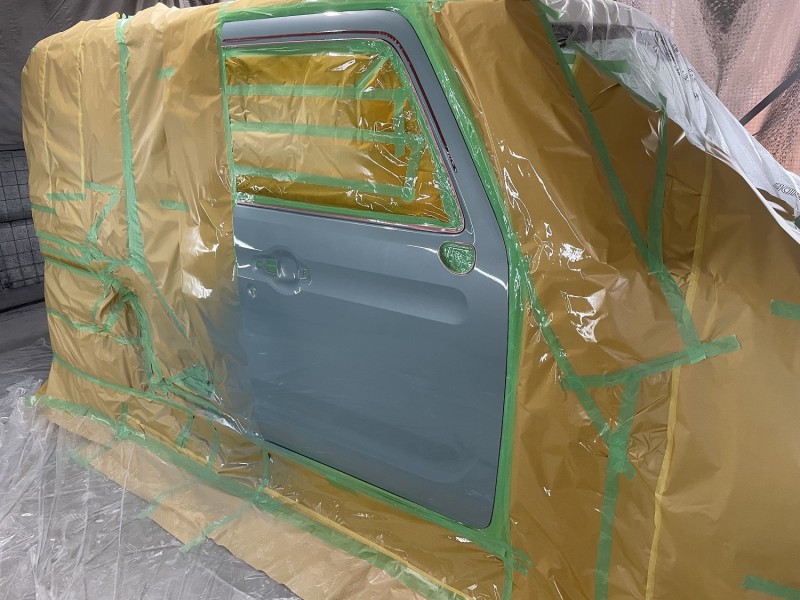 スズキ スペーシアの右フロントドア、ロッカパネル、リヤクォーターの塗装が完了致しました。