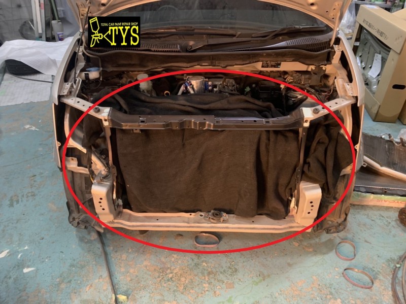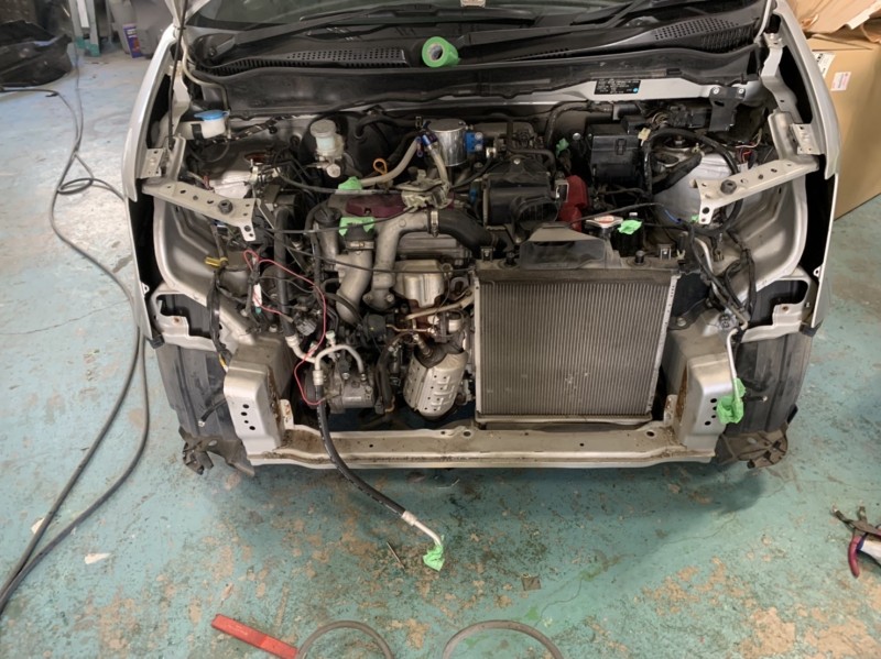 先日入庫したスズキ ワゴンRのフロント廻り部品バラシ&コアサポートの交換が完了しましたので投稿致します。