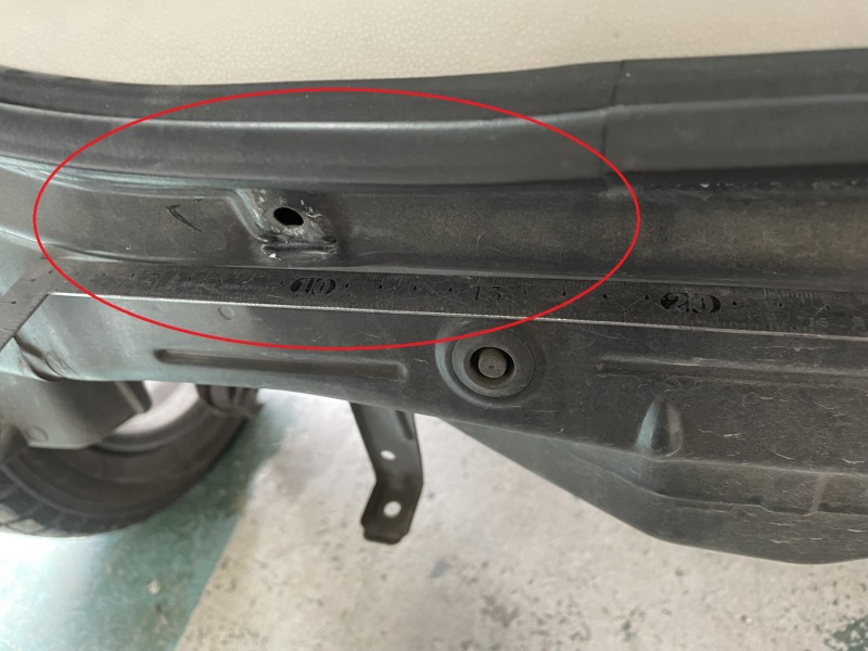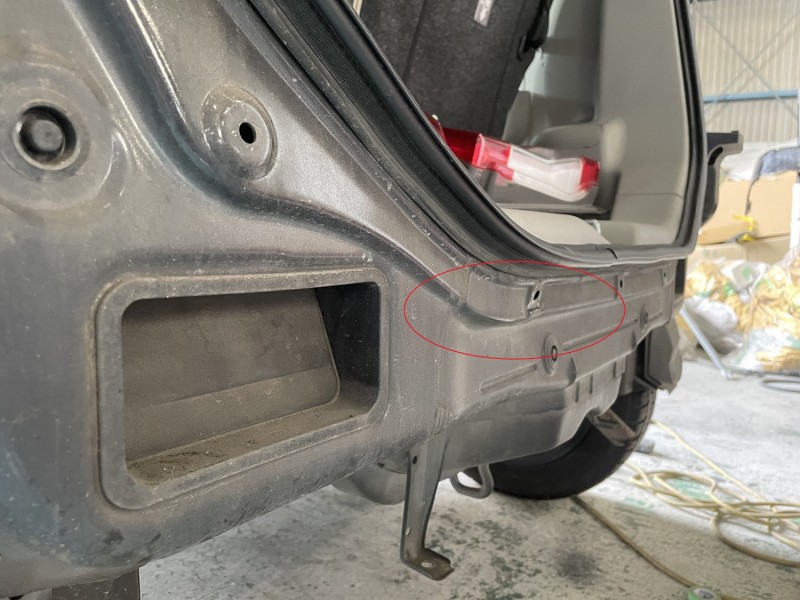 ダイハツ タント バックパネル 凹み 入庫時(右側から)