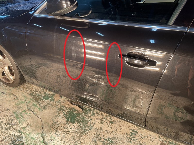 アウディ A4 アバント 右フロントドア スリキズ 磨き完了 通常の光りにて(フロント側から)