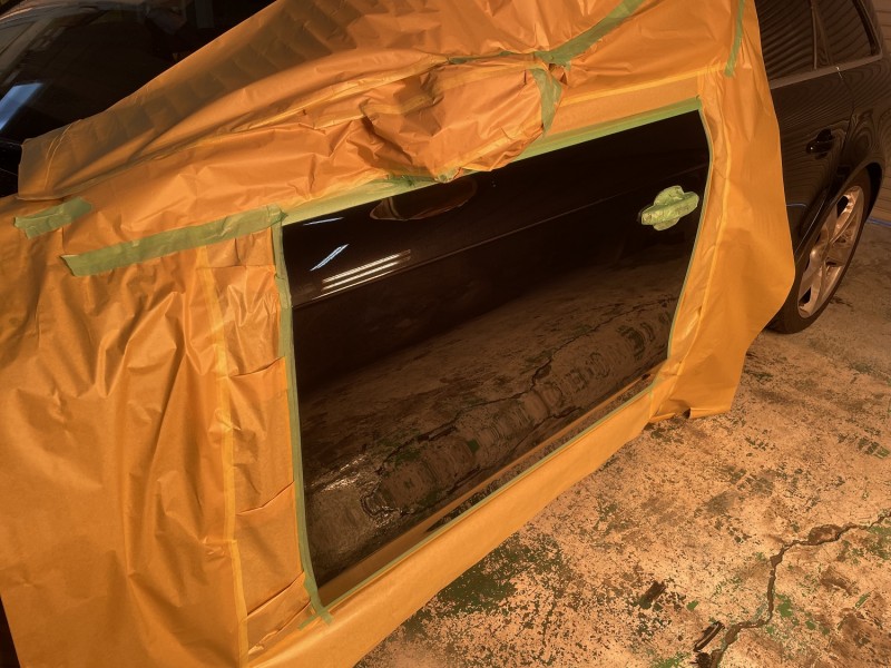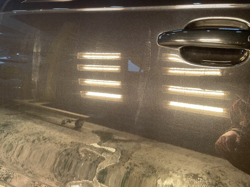 アウディ A4 アバント 右フロントドア スリキズ 磨き完了 通常の光りにて(リヤ側から)