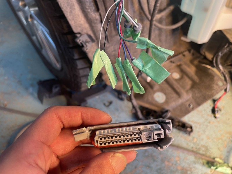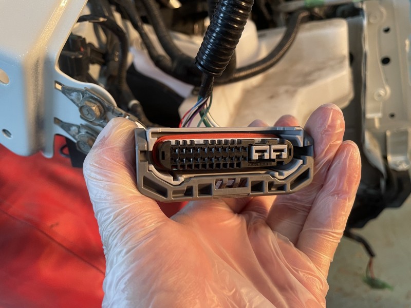 最初はピンを一つ外そうと通常のピンの抜き方で施工してたのですが、端子があまりにも小さくツメの手応えがなかったので、バラしてツメのかかってる部分が見えるところまで慎重に削りました(笑)