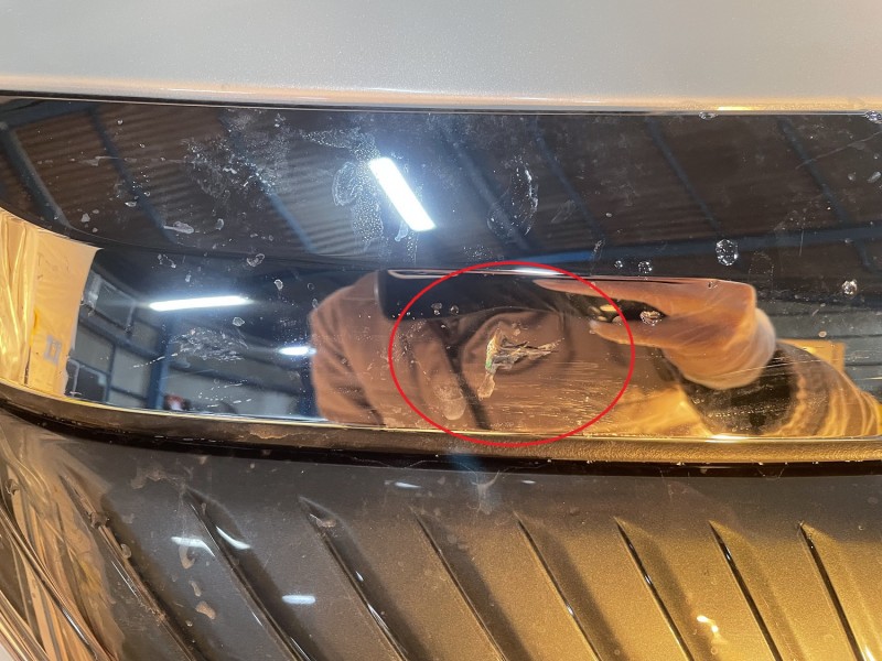 トヨタ ハリアー ボンネット鈑金 入庫時 メッキ損傷部分