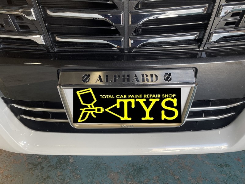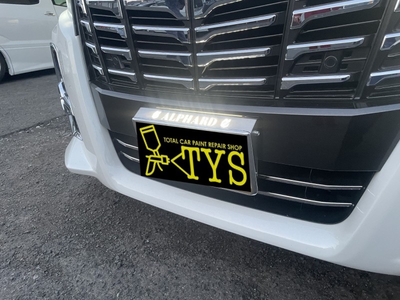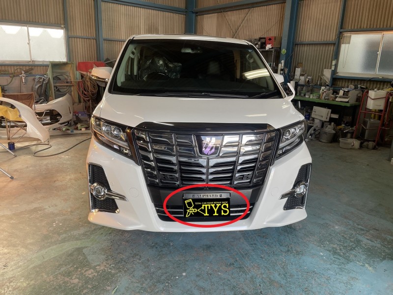 トヨタ アルファード フロントナンバーLED化 入庫時(フロントナンバーフレーム アップ)