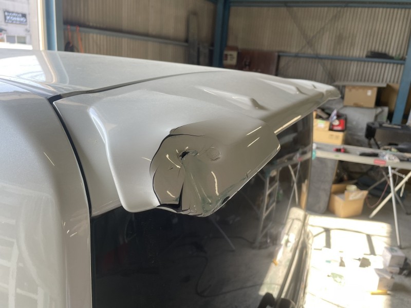 リヤウイングが破損したダイハツ タントが入庫しましたので投稿致します。