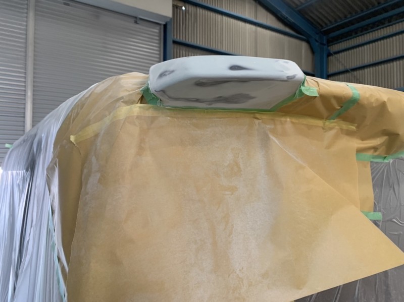 ダイハツ タント リヤウイング破損 下地処理後サンディング(上から)
