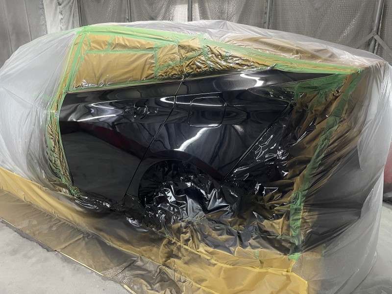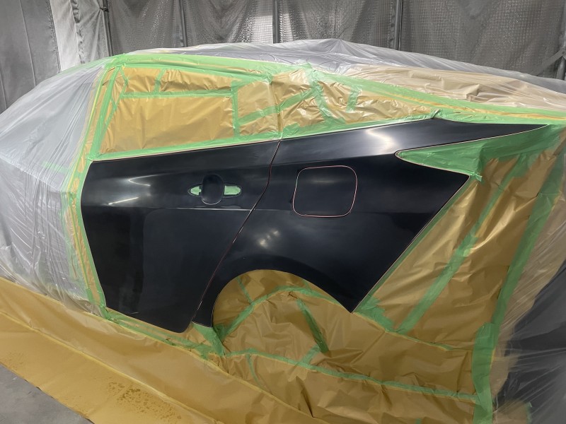 トヨタ プリウス 左リヤドア、左クォーター 塗装完了(リヤ側から)