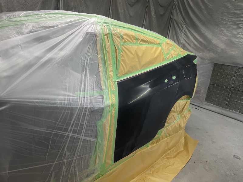 トヨタ プリウス 左リヤドア、左クォーター 塗装完了(フロント側から)