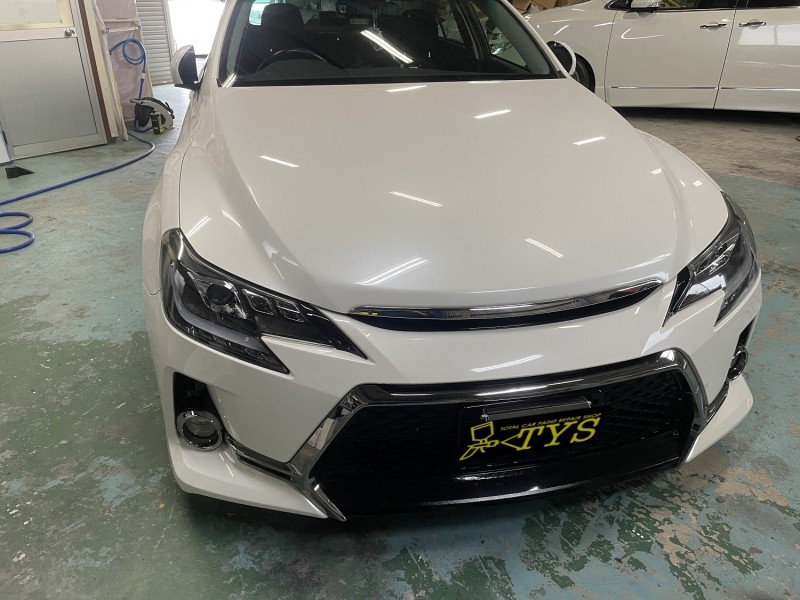 常連様のトヨタ マークXのフロントバンパー修理の依頼をいただいたので、投稿致します。(^_^)/