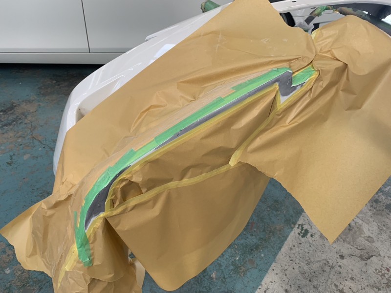 トヨタ マークX フロントバンパー修理 損傷部サンディング