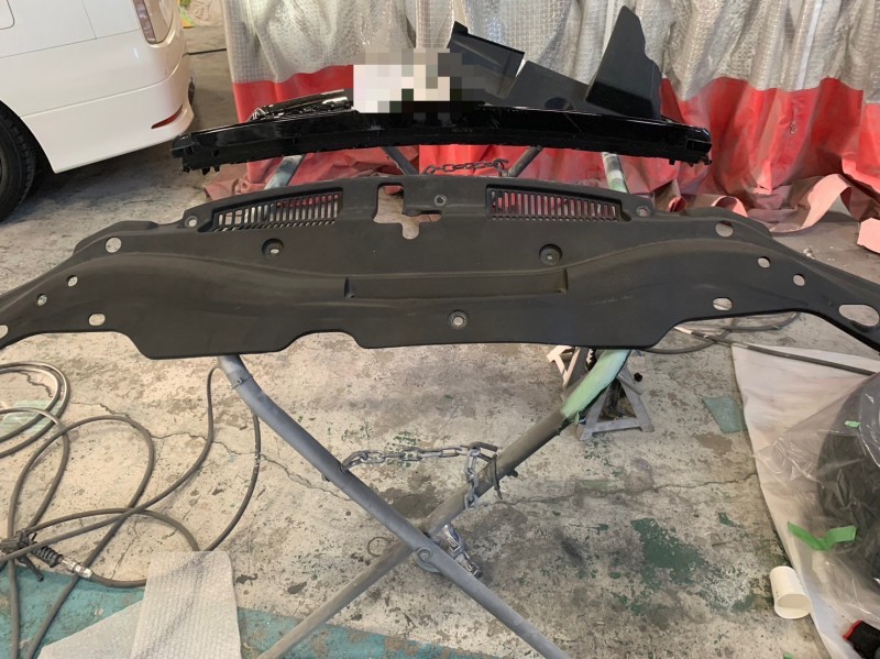 フロントバンパーを脱着する際に外すクールエアインテークダクトシールという品名のボンネット開けてすぐ手前にあるパーツなのですが、経年劣化により白くなってたのでサービスで色味復活して黒くをしました。