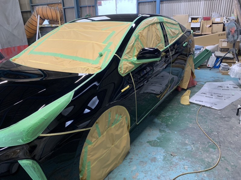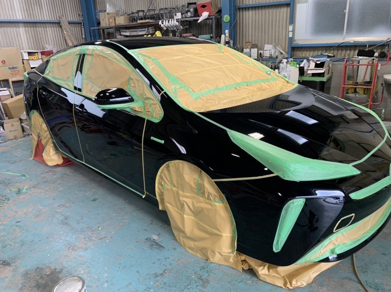 トヨタ プリウス ボディ磨き フロント及び右側面 初期研磨完了