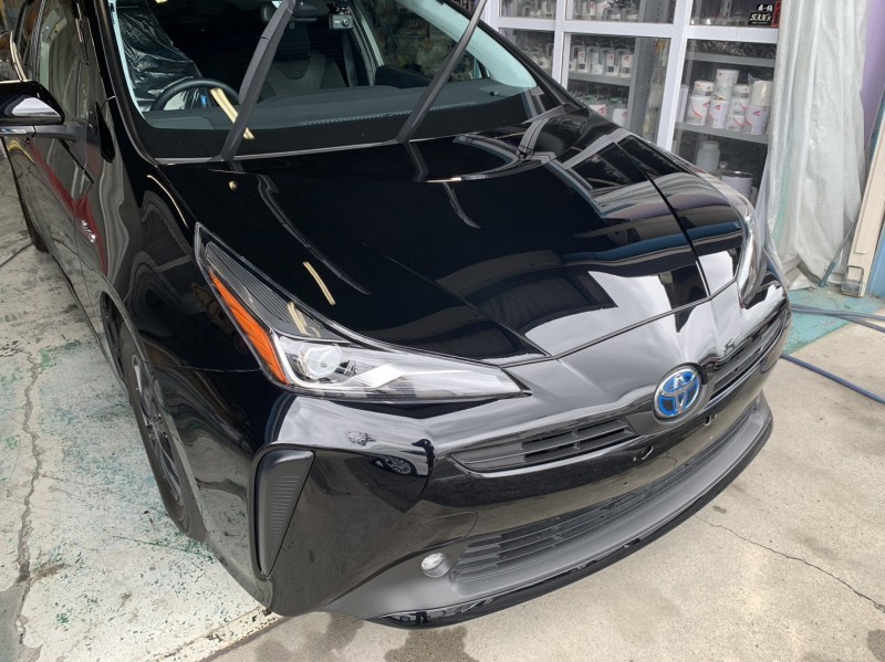トヨタ プリウス ボディ磨き後、洗車及び簡易ボディーコーティング完了(フロント、右側面)