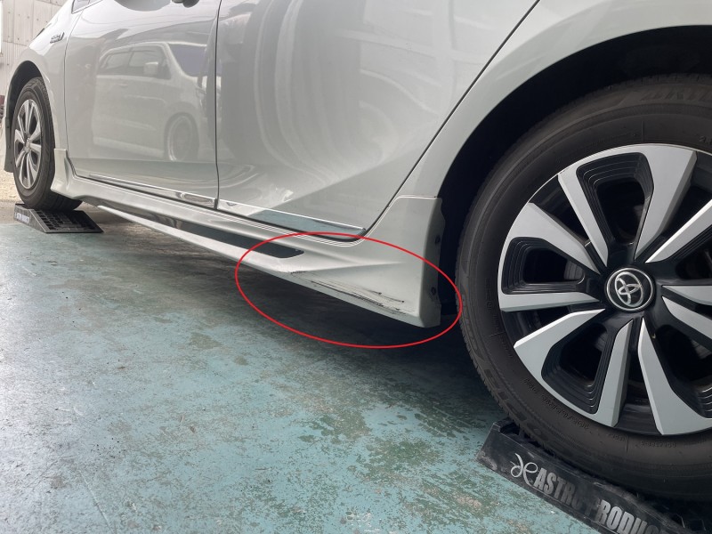トヨタ プリウスPHV サイドスカート(モデリスタ)取替 左側