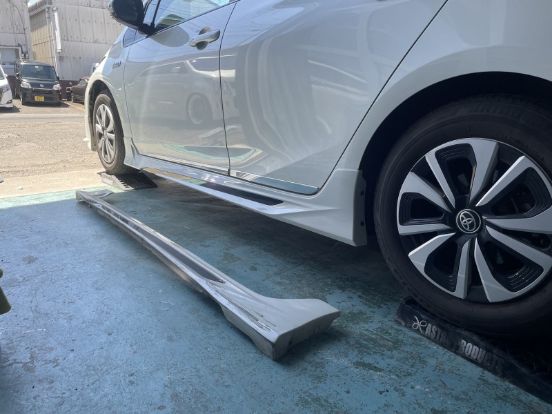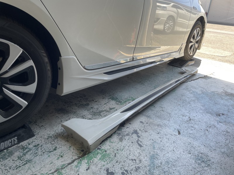 トヨタ プリウスPHV サイドスカート(モデリスタ)取替 入庫