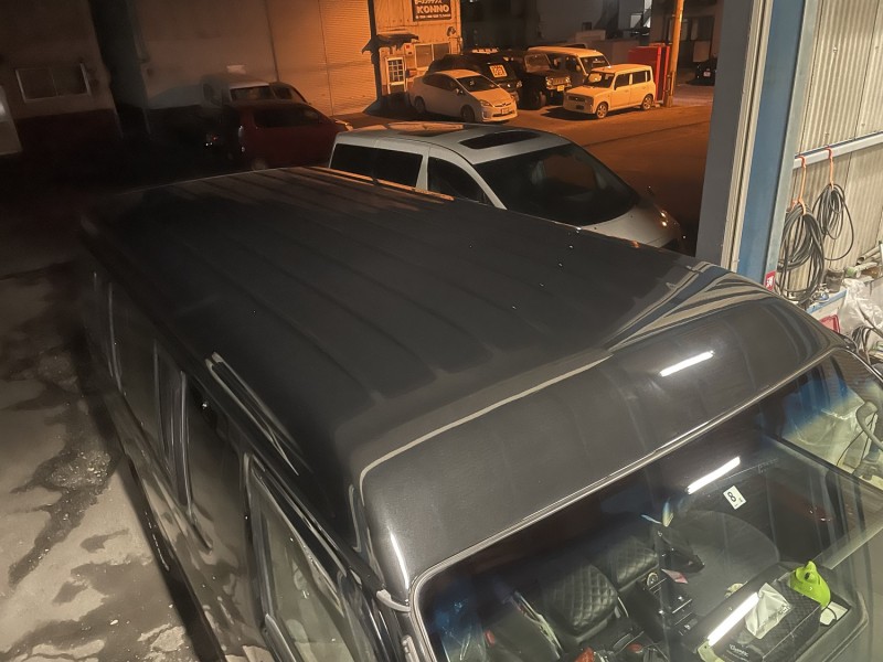 トヨタ ハイエース ルーフ部 塗装後のブツ取り (フロントから)