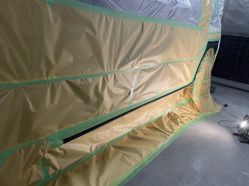 トヨタ ルーミー ロッカパネル、リヤクォーター 塗装完了(フロントから)