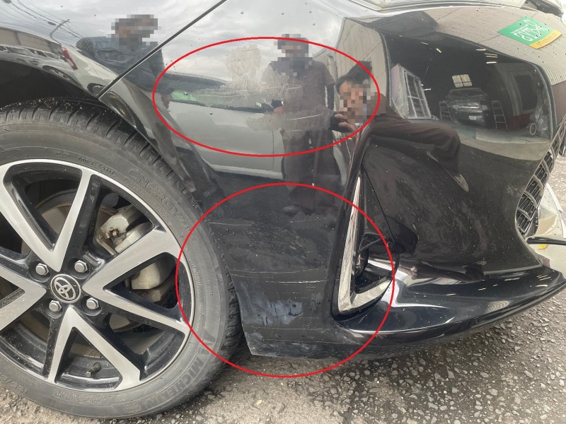 トヨタ フィールダーハイブリッド フロントバンパー修理 損傷部