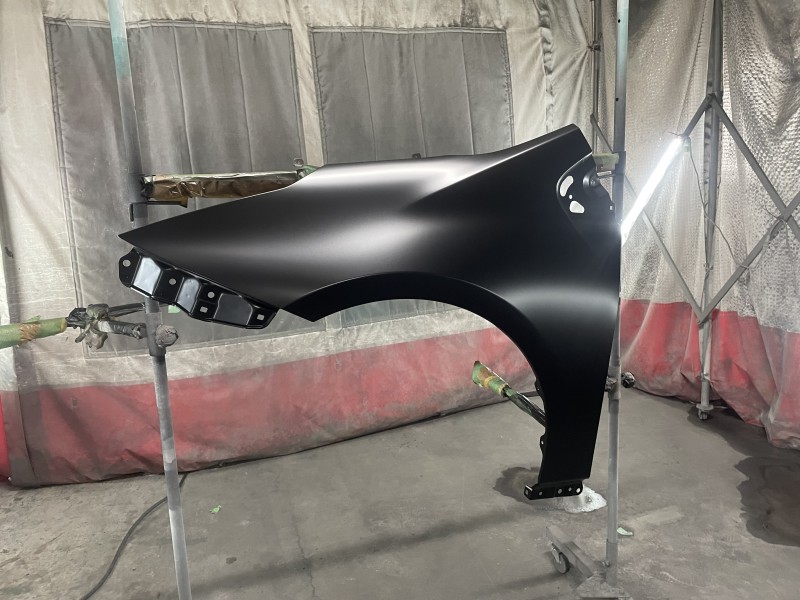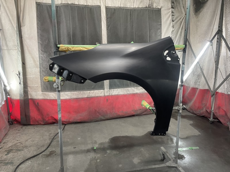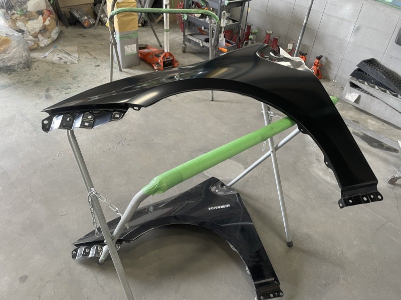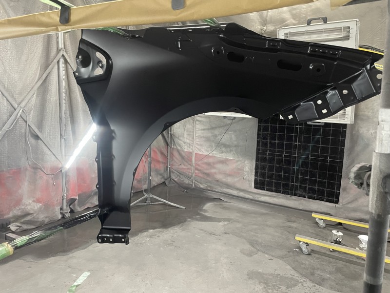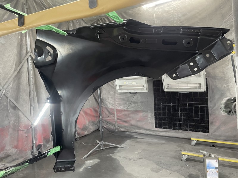先日入庫したトヨタ 50プリウス前期の発注していた新品フェンダーを入手し、塗装が完了しましたので投稿致します。