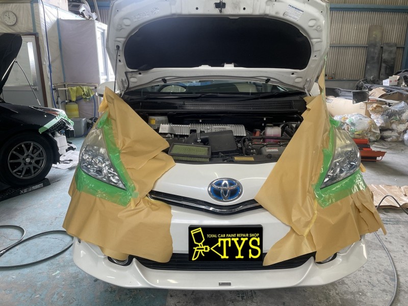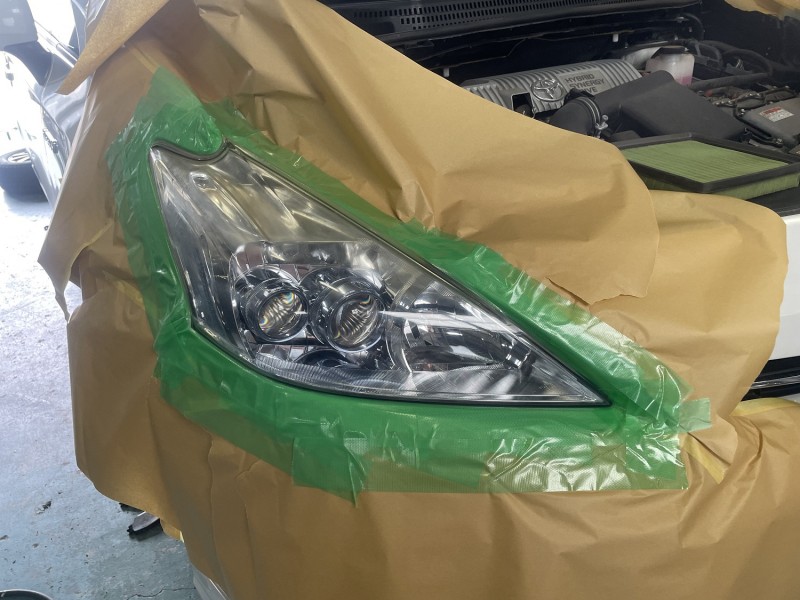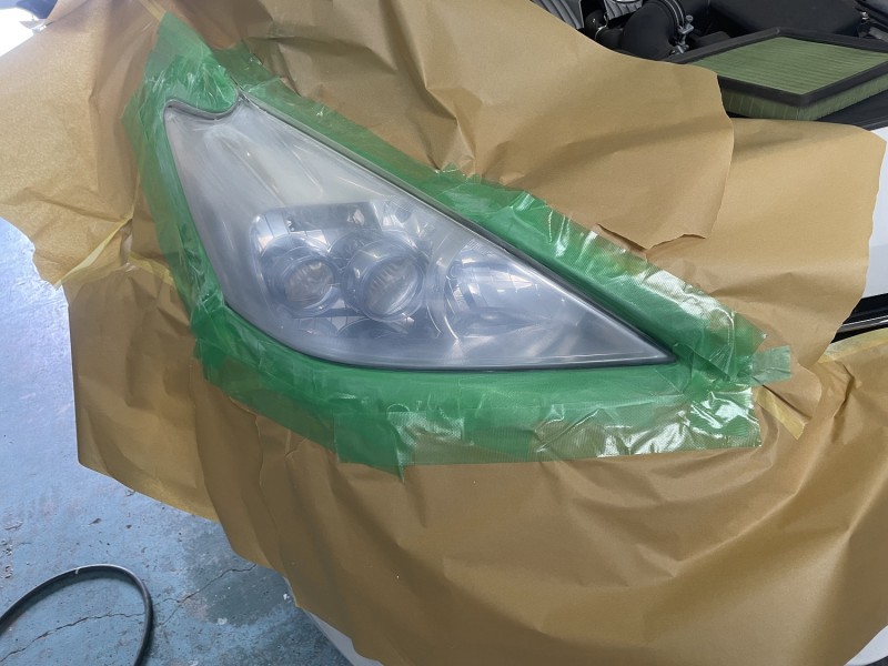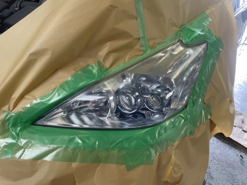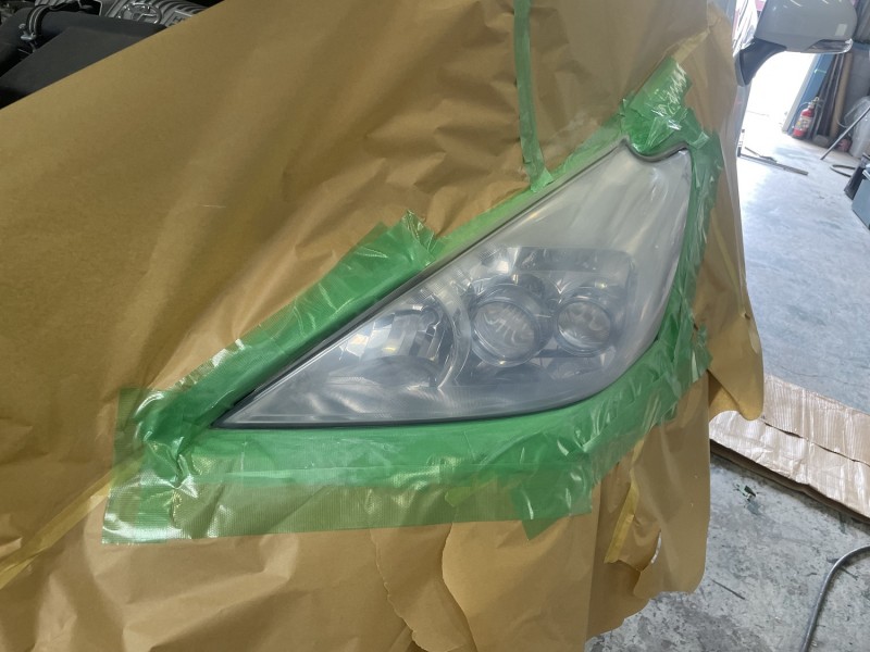 トヨタ プリウスα ヘッドライト磨き サンディング(助手席側)