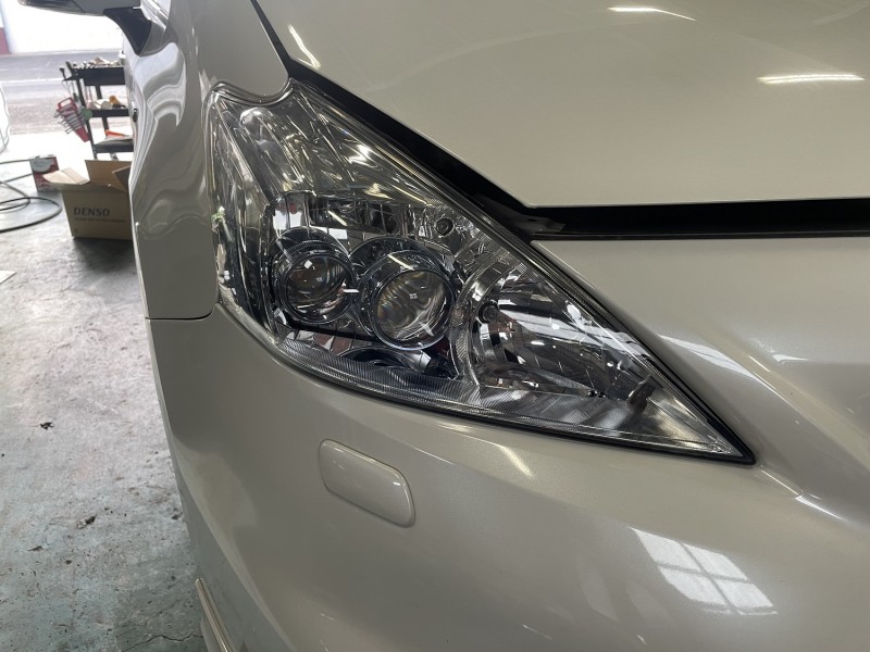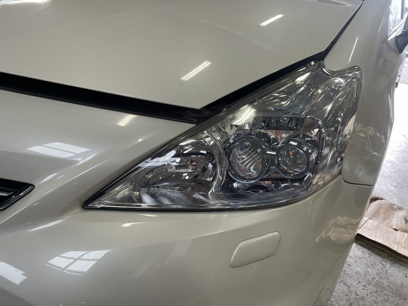 トヨタ プリウスα ヘッドライト磨き完了(助手席側)