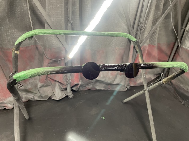 最初はフロントバンパーをカラーでボカしてクリヤーを1パネル予定でしたが、小傷や飛び石が多いのでカラーもブロック塗装にて1パネル塗装しました。m(_ _)m