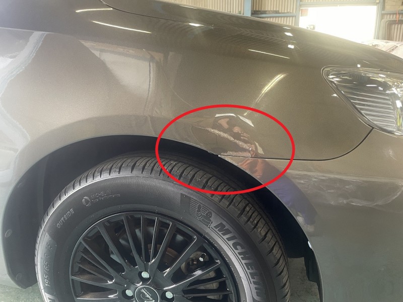 トヨタ フィールダーの右フロントフェンダーの修理をお受け致しましたので投稿致します。