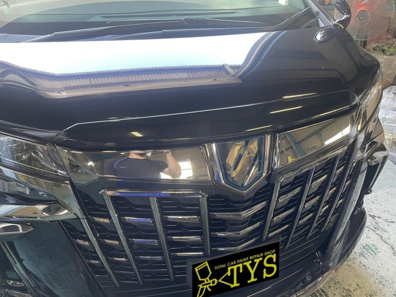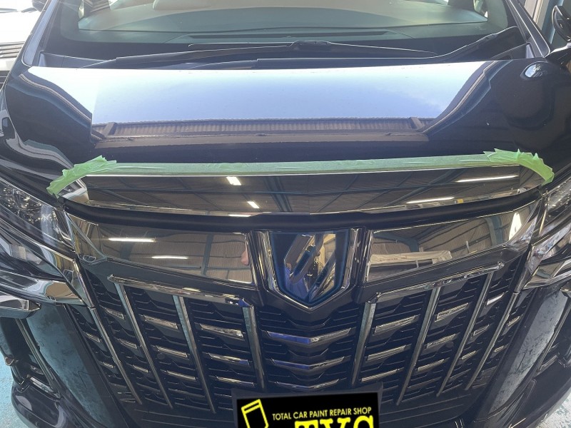 トヨタ アルファード フードモールディング取替完了(車体同色)