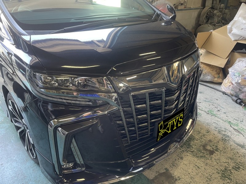 トヨタ アルファード フードモールディング取替完了(車体同色) 別のアングルから