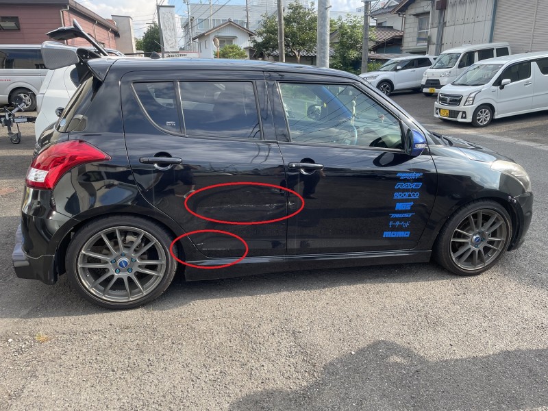 スズキ スイフト 右側面修理 損傷部アップ(クォーター部)