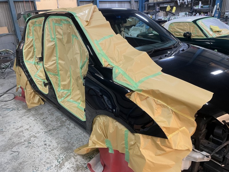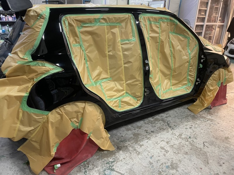 磨き仕上げ施工後、フロントドア・リヤドアの塗装をしていきます。(*^_^*)