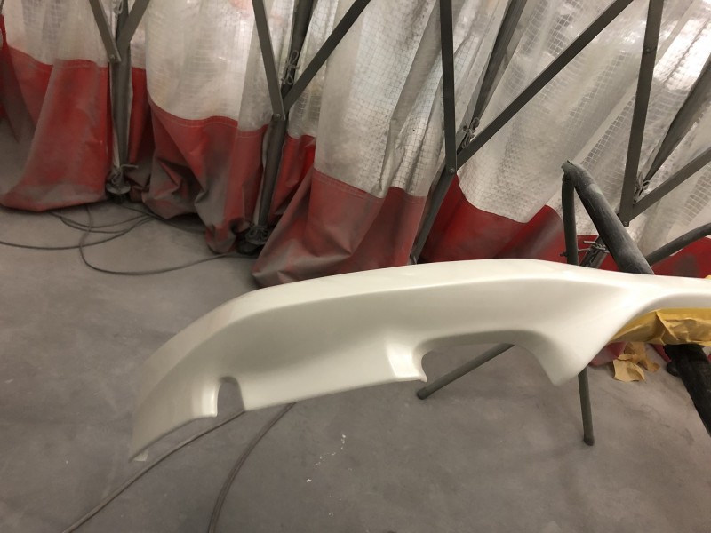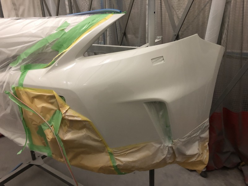 夕方くらいから、昨日塗装準備していたプリウスαのバンパーとスポイラーを塗装しました。