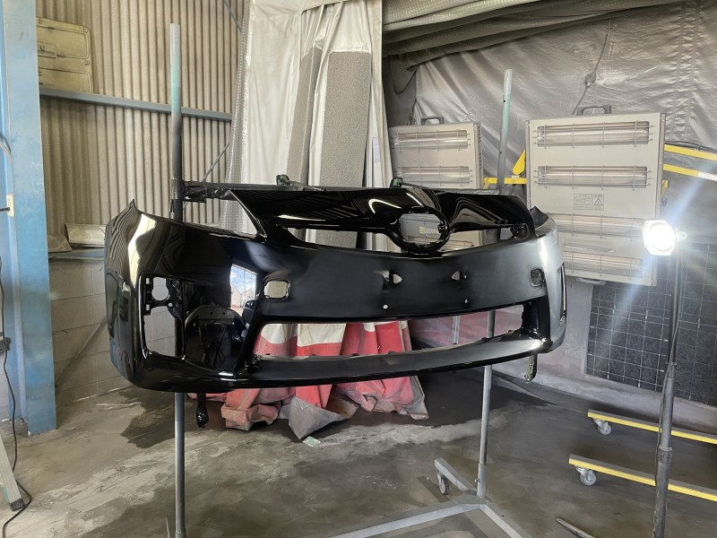 トヨタ プリウス フロントバンパー塗装 塗装完了(左側から)