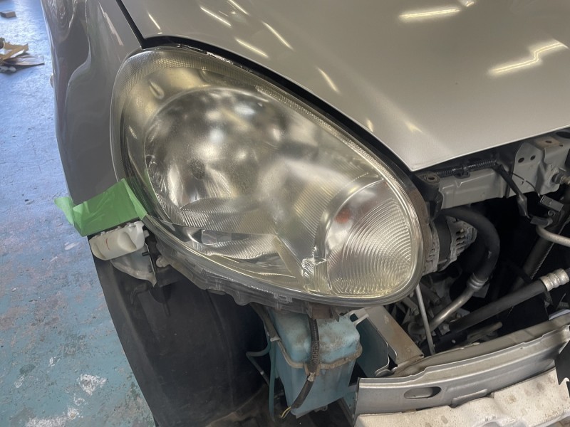 ニッサン マーチ ヘッドライト磨き 入庫時 助手席側